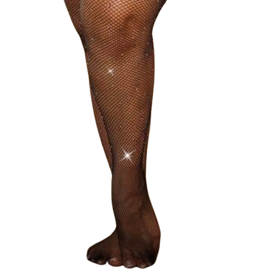 Black rhinestone fishnet tights.